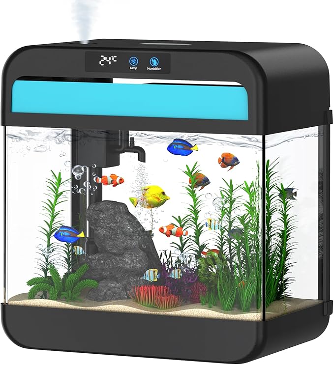 3-color LED light enhances fish visibility and adds desktop ambiance.