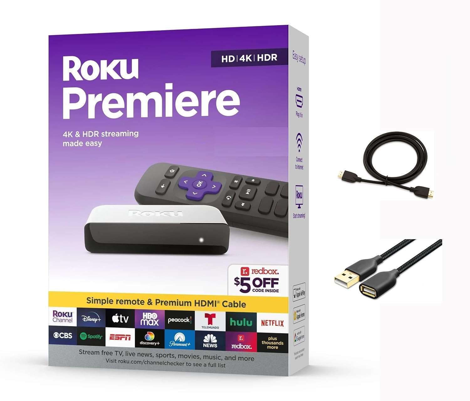 Roku 3920RW-SW Premiere, 4K/HDR Streaming Media Player