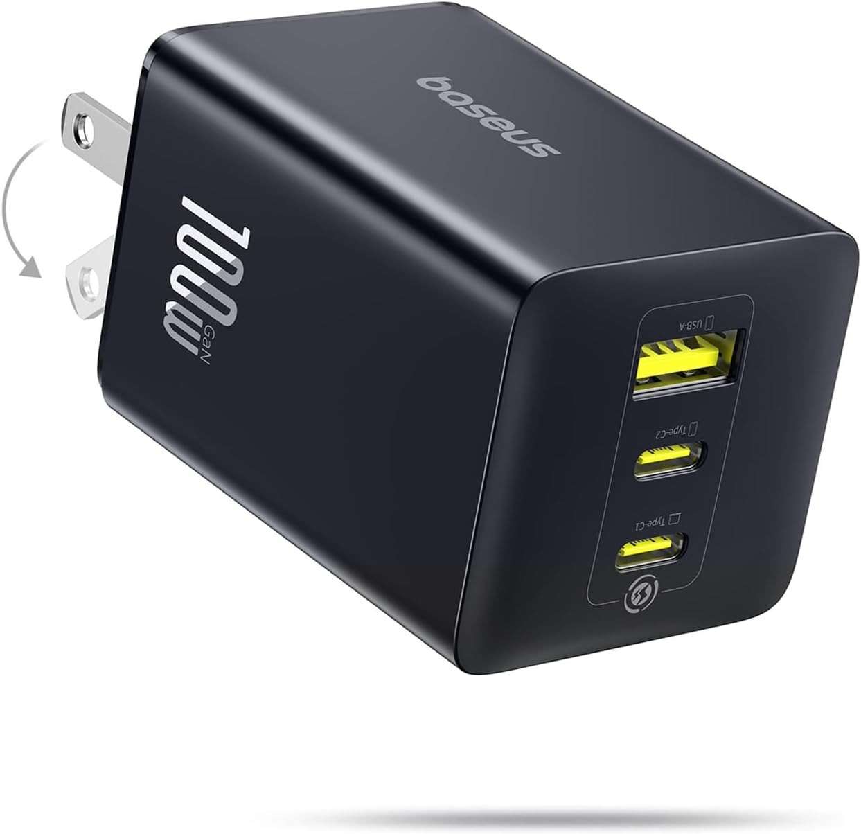 Baseus 100W USB C Charger Block, 3-Port GaN Foldable Compact